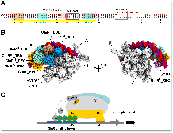 B. GlnR依賴型轉(zhuǎn)錄激活復(fù)合物結(jié)構(gòu);