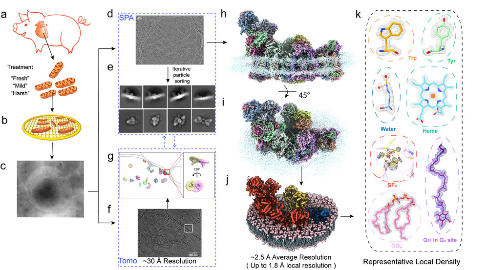 朱家鵬研究團隊突破了蛋白質純化的傳統概念和冷凍電子顯微鏡技術的束縛,首次實現了在完整的細胞器水平上對心臟來源的線粒體進行超高分辨率成像,可直接從線粒體上精準捕獲生命過程的一瞥,精確到了近乎原子級別的細節。