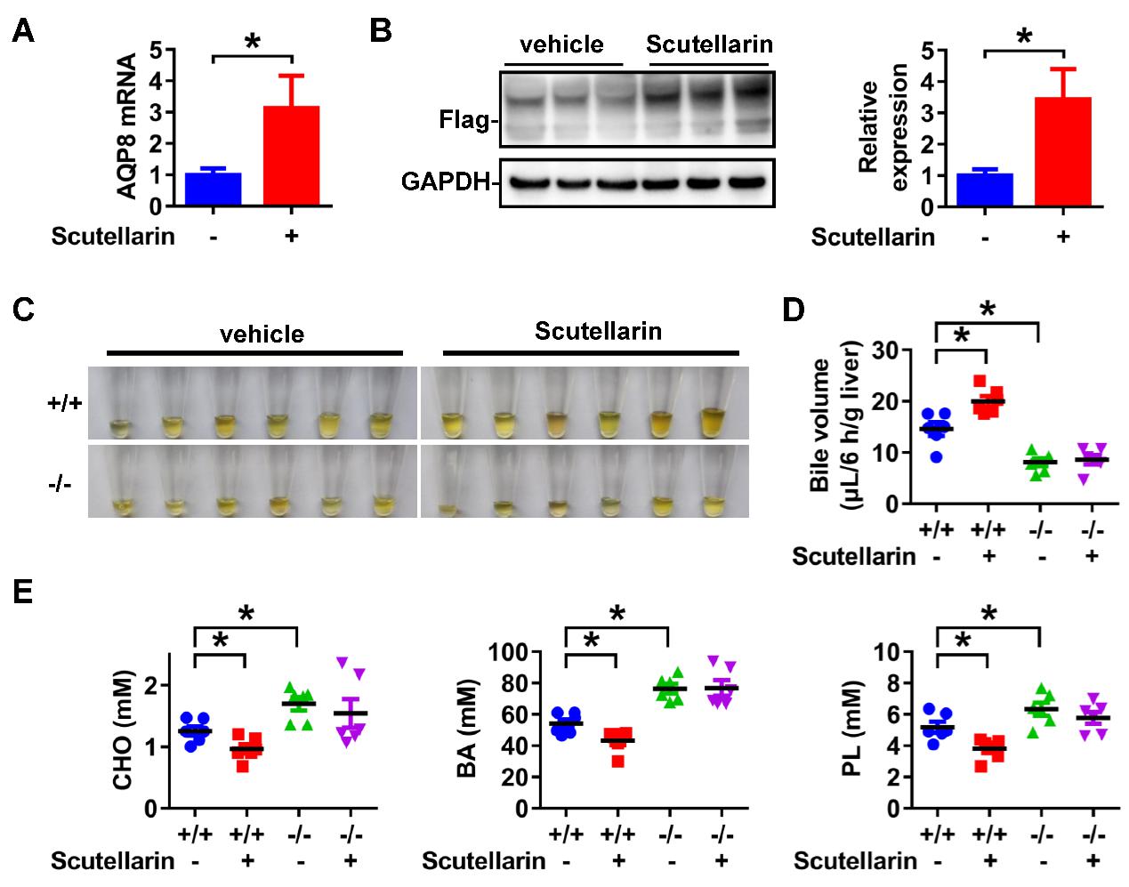 Scutellarin induced liver AQP8 expression and accelerated bile excretion in wildtypebut not AQP8-/- mice